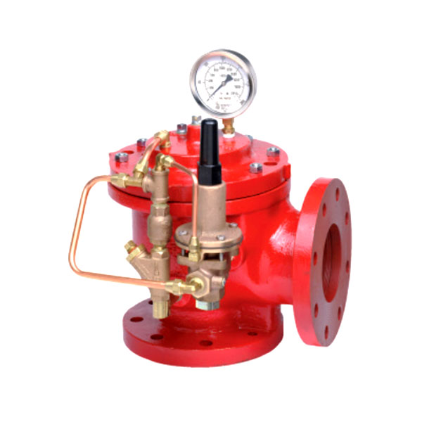 Válvula de alívio de pressão automática, controlada por piloto. A válvula modula para manter uma pressão predeterminada e estável na rede. Caso a pressão a montante exceda o ponto de ajuste necessário, a válvula se abre, liberando o excesso de pressão. Quando a pressão cai abaixo do valor definido, a válvula fecha hermeticamente.